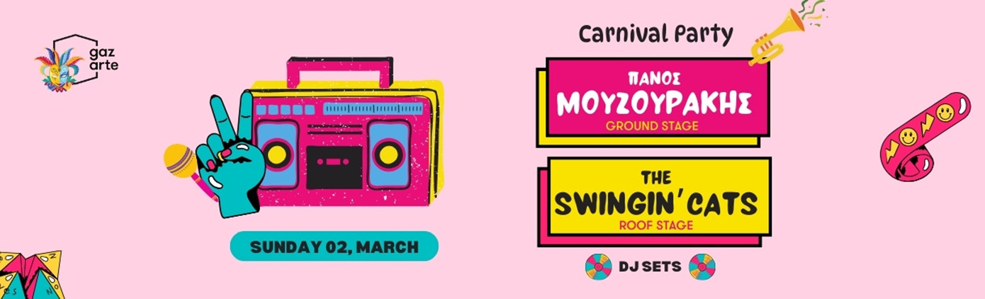 Στο Ground Stage, ο ανατρεπτικός Πάνος Μουζουράκης έρχεται για ένα μεγάλο πάρτι-σόου που θα κλείσει το Τριώδιο! Με ανατρεπτική διάθεση, νέες διασκευές, ενορχηστρώσεις και απρόβλεπτους αυτοσχεδιασμούς, ο αγαπημένος καλλιτέχνης και η μπάντα του θα μας κάνουν να τραγουδήσουμε και να χορέψουμε non-stop! Την ίδια στιγμή, οι The Swingin’ Cats ανεβαίνουν στη σκηνή του Roof Stage και φέρνουν μαζί τους την πιο χορευτική διάθεση! Με ξεσηκωτικές swing, rock ‘n’ roll και pop επιτυχίες, θα μας κάνουν να χορέψουμε ασταμάτητα. Ο Γιώργος Ζερβός, ως frontman του σχήματος, θα δίνει το σύνθημα για ένα μουσικό rollercoaster γεμάτο ενέργεια και ανατροπές!