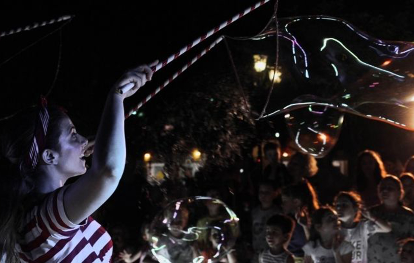 Στο Bubble Show, μικροί και μεγάλοι μπαίνουν σε έναν ονειρικό κόσμο όπου όλα μεταμορφώνονται. Οι θεατές γίνονται συν-δημιουργοί ενός φευγαλέου κόσμου φτιαγμένου από αγάπη, νερό και σαπούνι.