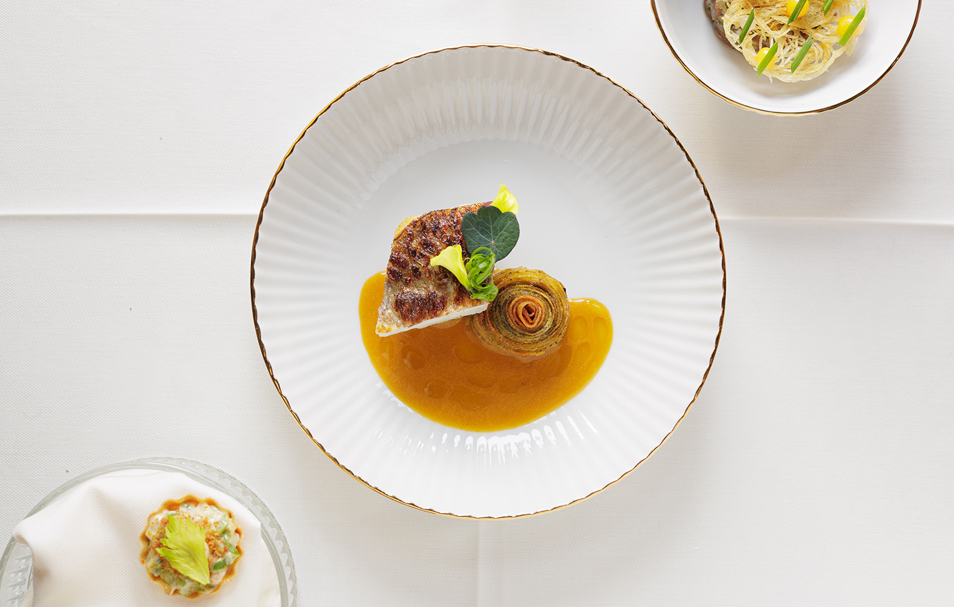 Καθώς η εμπειρία εξελίσσεται, κάθε πιάτο ξεδιπλώνεται μέσα από αρώματα, υφές και γευστικές αντιθέσεις, δημιουργώντας μια αρμονική και πολυεπίπεδη αφήγηση που κορυφώνεται με ισορροπία και κομψότητα.