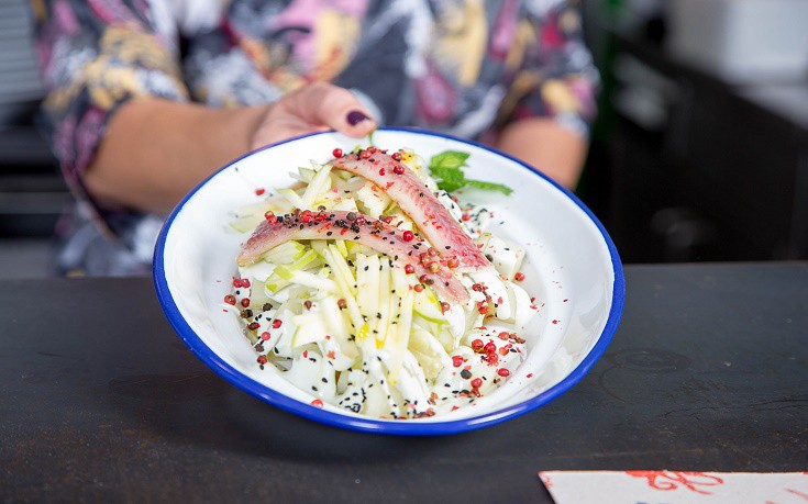 Πατατοσαλάτα σπαστή με χέλι και μαγιονέζα Wasabi
