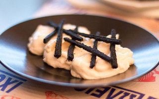 Ριζότο με μελάνι σουπιάς και χυμό πορτοκαλιού