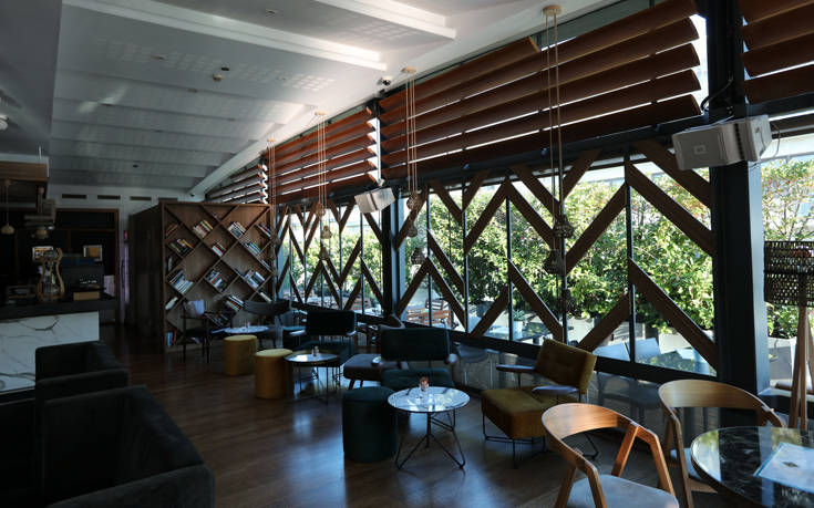 Ο χώρος ανανεώθηκε και δημιουργήθηκαν πολλές διαφορετικές γωνιές, για να φιλοξενήσουν τη διάθεση των επισκεπτών του.Η μεγάλη σάλα «ντύθηκε» στα λευκά, με ένα μεγάλο δέντρο ελιάς να δεσπόζει στο κέντρο της, δανείζοντας το χρώμα του σε τοίχους και άλλα αντικείμενα. Το φυσικό φως μπαίνει από τις μεγάλες τζαμαρίες, χαρίζοντας άπλετη θέα προς την πλατεία Συντάγματος και τη Βουλή των Ελλήνων.