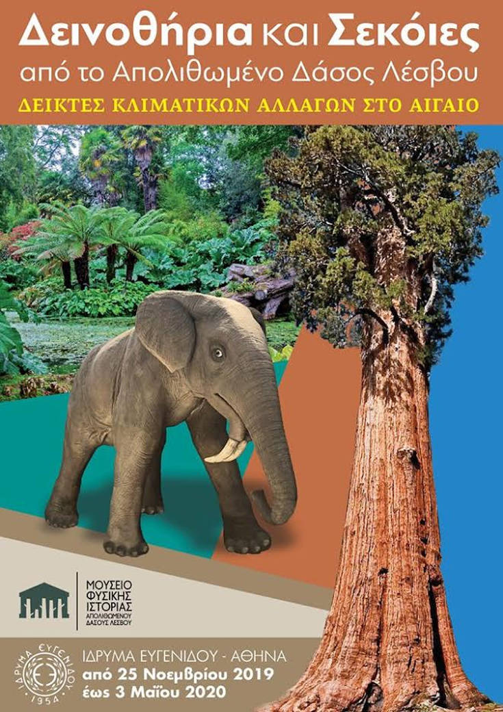 Οι μικροί φίλοι (παιδιά δημοτικού 6 – 12 ετών), αλλά και οι έφηβοι (13 έως και 17 ετών) μπορούν να θαυμάσουν από κοντά μία πρωτότυπη Έκθεση, στο Ίδρυμα Ευγενίδου. Το Μουσείο Φυσικής Ιστορίας Απολιθωμένου Δάσους Λέσβου θα παρουσιάσει από 25 Νοεμβρίου 2019 έως 3 Μαΐου 2020 την περιοδική έκθεση «Δεινοθήρια και Σεκόιες από το Απολιθωμένο Δάσος Λέσβου: Δείκτες κλιματικών αλλαγών στο Αιγαίο», που διοργανώνει το Μουσείο Φυσικής Ιστορίας Απολιθωμένου Δάσους Λέσβου με επιστημονικό υπεύθυνο τον Καθηγητή Νίκο Ζούρο, Διευθυντή του Μουσείου.