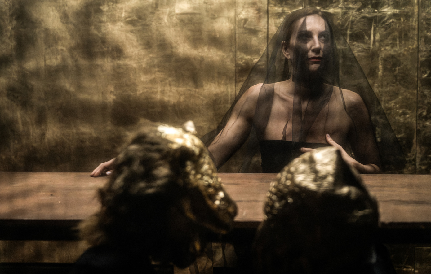 Ένας σπουδαίος θίασος με τους Πυγμαλίωνα Δαδακαρίδη, Γιώργο Γάλλο, Στεφανία Γουλιώτη, Ηρώ Μπέζου, Άννα Καλαϊτζίδου, Γιάννη Κλίνη, Αινεία Τσαμάτη, Νίκο Μήλια, Γκαλ Ρομπίσα, Μπάμπη Γαλιατσάτο, Θανάση Ραφτόπουλο, Αντώνη Αντωνόπουλο, καθώς και τον διαπρεπή μουσικό Φώτη Σιώτα σε εξέχοντα ρόλο επί σκηνής, μας βυθίζει στην υπαρξιακή αγωνία της εμβληματικής τραγωδίας του Ευριπίδη, υπό τη σκηνοθετική καθοδήγηση του Δημήτρη Καραντζά.