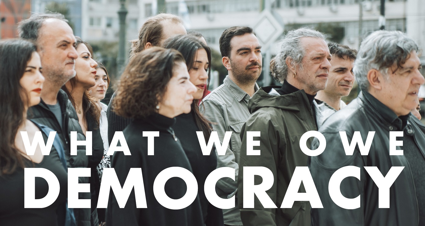 Περίπου 30 καλλιτέχνες: ηθοποιοί, τραγουδιστές, συγγραφείς, εικαστικοί, ενώνουν τις δυνάμεις τους στην πλατφόρμα δημιουργικής συνεργασίας, «What We Owe Democracy / Τι οφείλουμε στη Δημοκρατία» που στήνει ο καλλιτεχνικός διευθυντής του Δημοτικού Θεάτρου Πειραιά Νίκος Διαμαντής.