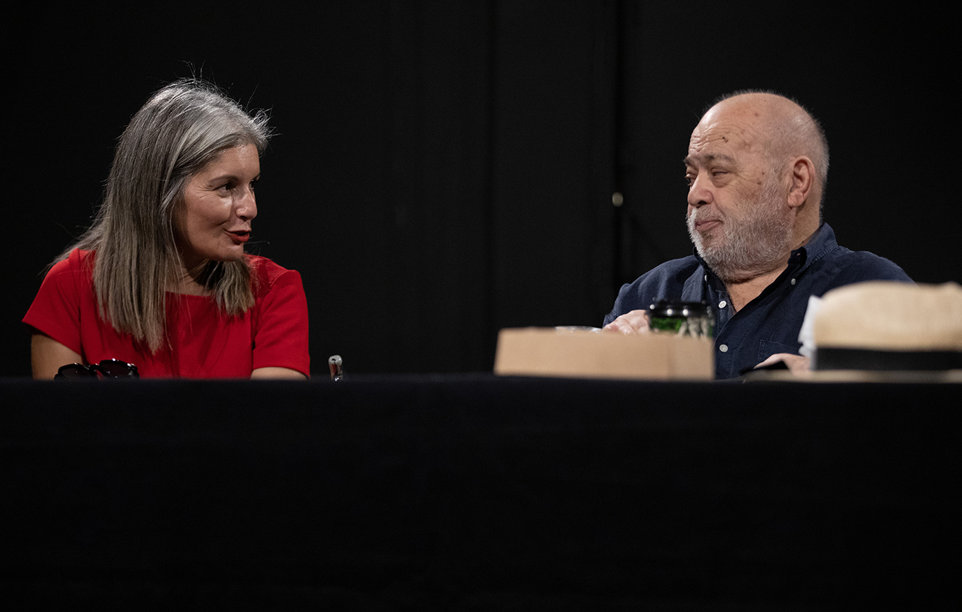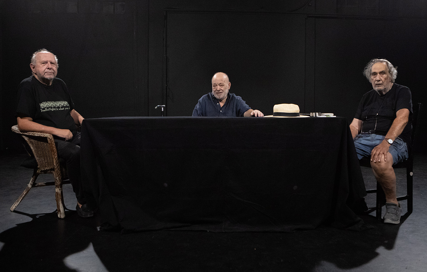 Παν. Σκουρ.: Δεν ζήτησα να διαβάσω το έργο, όταν άκουσα ότι οι άλλοι δύο είναι ο Χρήστος Βαλαβανίδης και ο Κώστας Αρζόγλου. Το διάβασα απλώς για να το διαβάσω κι ενθουσιάστηκα περισσότερο απ’ ό,τι περίμενα. Είναι ένα έργο ηθοποιίστικο. Ένα έργο για ηθοποιούς. Έχει ανάγκη από ηθοποιούς που έχουν κάνει μια διαδρομή στο σανίδι, έχουν παίξει διαφορετικά είδη θεάτρου, γιατί μπορεί να σε ξεγελάσει, να το αντιληφθείς σαν ένα εργάκι εύκολο που βγάζει και γέλιο. Όχι, είναι ένα έργο βαθύτατα απαιτητικό. Και έχοντας συνεργαστεί στο παρελθόν και με τον Χρήστο και με τον Κώστα είναι σαν να με πήραν τηλέφωνο συγγενείς μου, πρώτα μου ξαδέλφια. Έχουμε μια σχέση σχεδόν συγγενική όλα αυτά τα χρόνια. Και είμαι πολύ ευτυχισμένος με αυτή τη συνεργασία. Και ότι βρισκόμαστε στο Από Μηχανής με όλους τους συντελεστές. Είναι κοντά με όλα τα προβλήματα που έχουμε στις πρόβες και τις αγωνίες, γιατί δεν γίνεται αλλιώς, έτσι γεννιέται το καινούριο.