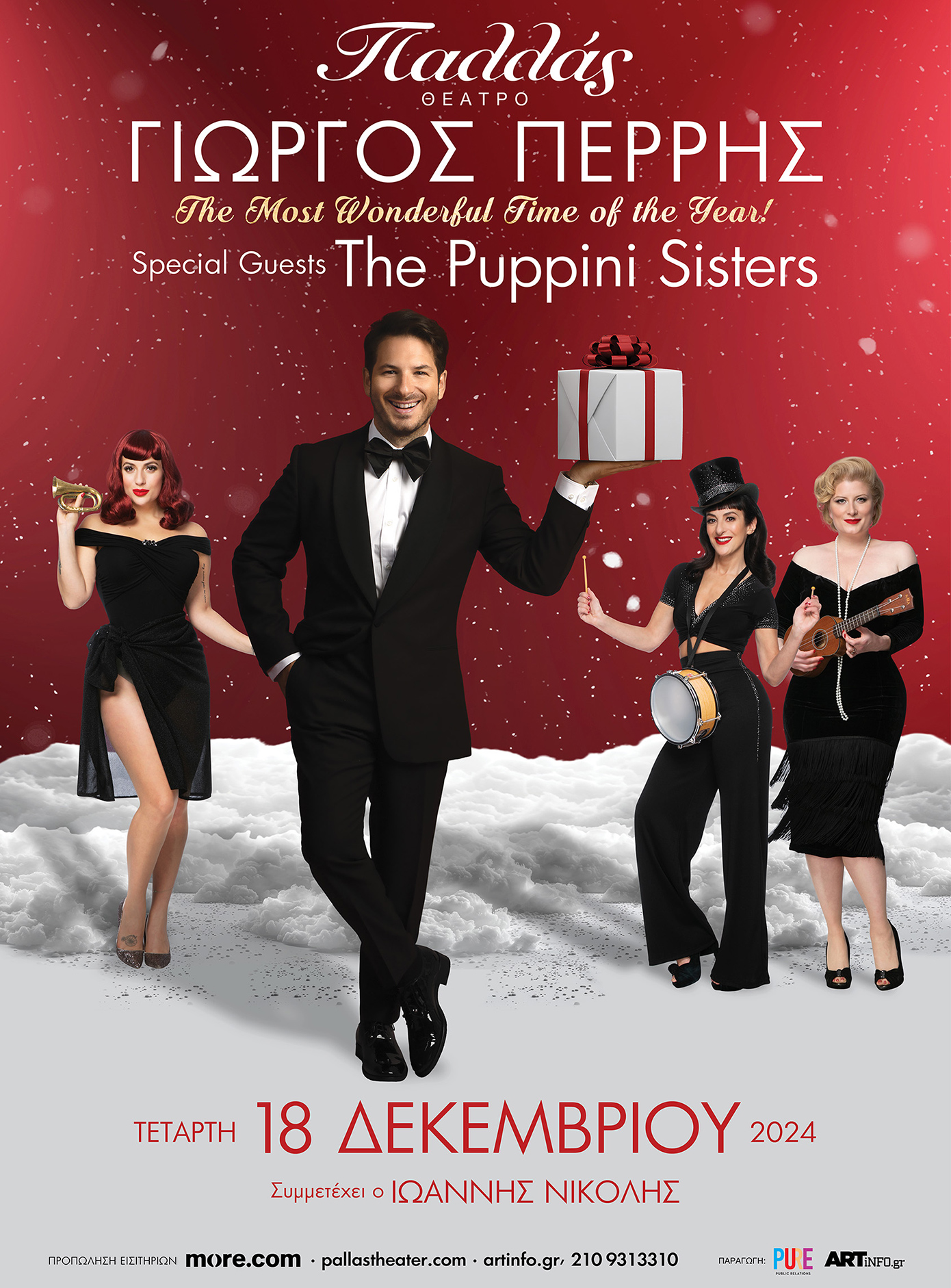 Μία εβδομάδα πριν από τα Χριστούγεννα, η γιορτινή ατζέντα έχει ένα μόνο ραντεβού: ο Γιώργος Περρής ανεβαίνει στη σκηνή του Θεάτρου Παλλάς, φέρνοντας την πιο ωραία εποχή του χρόνου σε μια βραδιά γεμάτη συγκίνηση, νοσταλγία και λάμψη! Εκλεκτές καλεσμένες του οι Puppini Sisters, το μοναδικό φωνητικό τρίο με ρετρό ήχο από την Αγγλία!