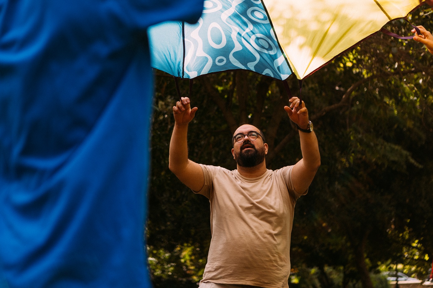 – To θέμα της παράστασης στον πυρήνα του είναι σκληρό. Τι μέσα χρησιμοποιείτε για να μεταδώσετε τα μηνύματα στους μικρούς θεατές, όσο πιο ήπια γίνεται; Αν όλα τα παιδιά της γης, πιάναν γερά τα χέρια… Τι θα μπορούσε, άραγε, να συμβεί;