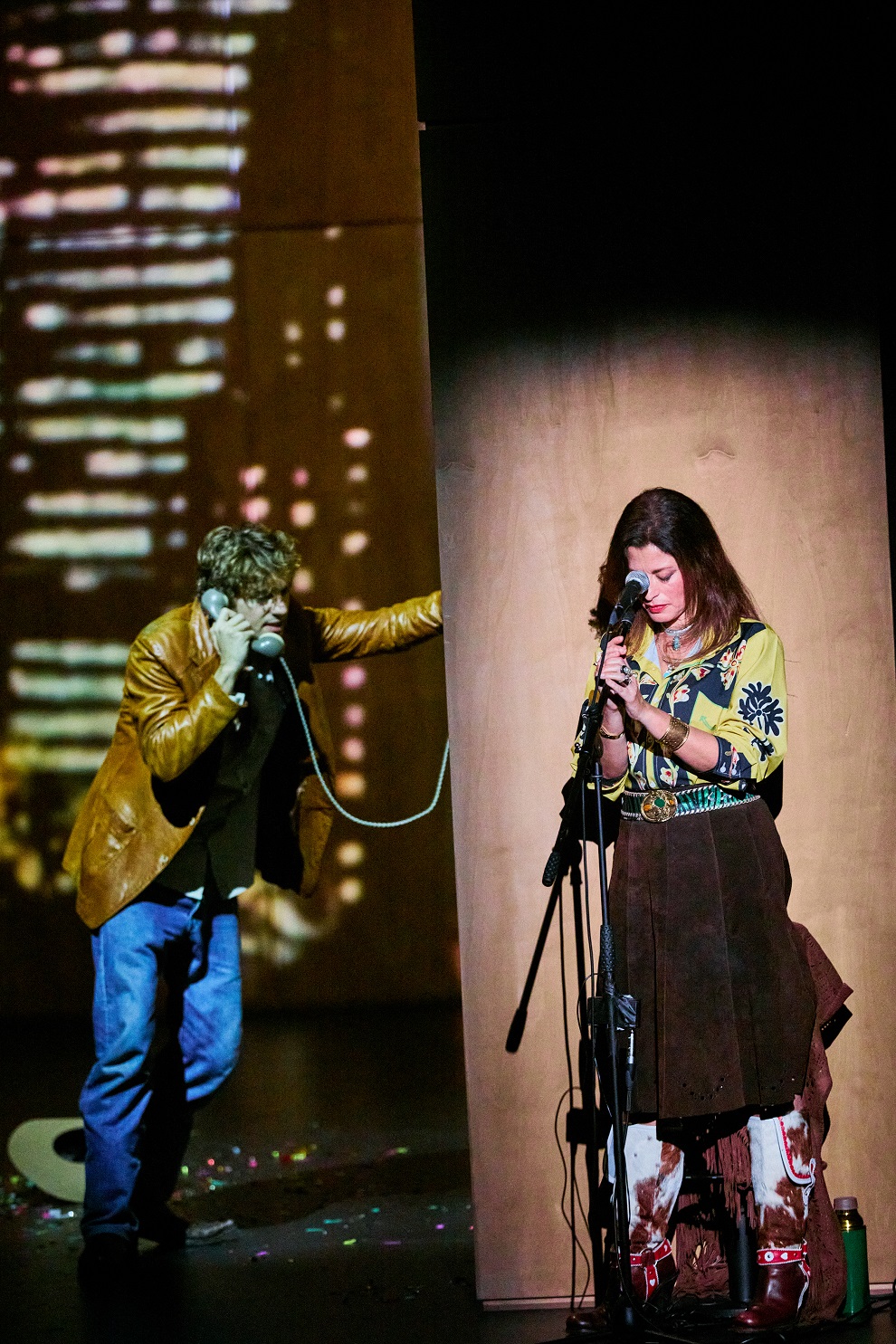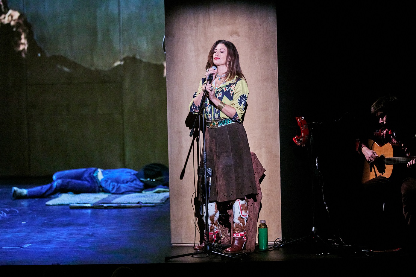 – Επειδή είπαμε για τη σκηνοθεσία και τον φωτισμό και πώς όλο αυτό δένει με την ιστορία, εδώ έρχεται και η μουσική. Κι έρχεστε κι εσείς που δεν βλέπουμε στο θέατρο live κάντρι μουσική, η οποία δένει πάρα πολύ ωραία με την όλη ατμόσφαιρα. Δύσκολο αυτό που κάνετε, έτσι δεν είναι;