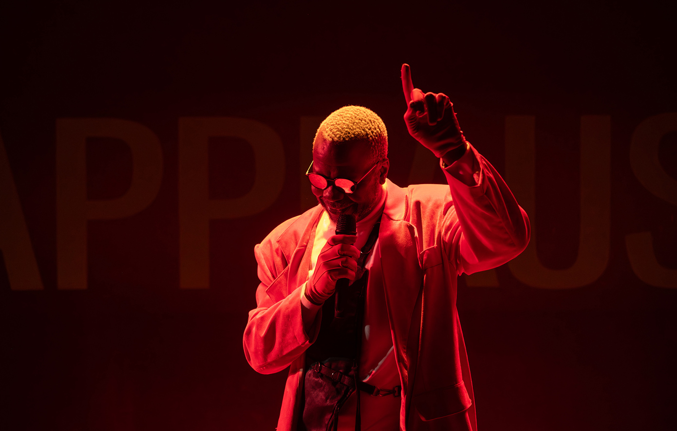 Στην παράσταση γίνεται χρήση στροβοσκοπικού φωτισμού (strobe light)