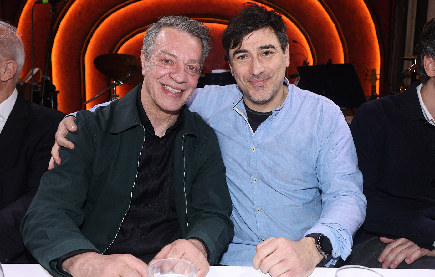 Τραγουδούν εναλλάξ live τα παιδιά του Στράτου Διονυσίου, ο Άγγελος, ο Στέλιος και ο Διαμαντής.