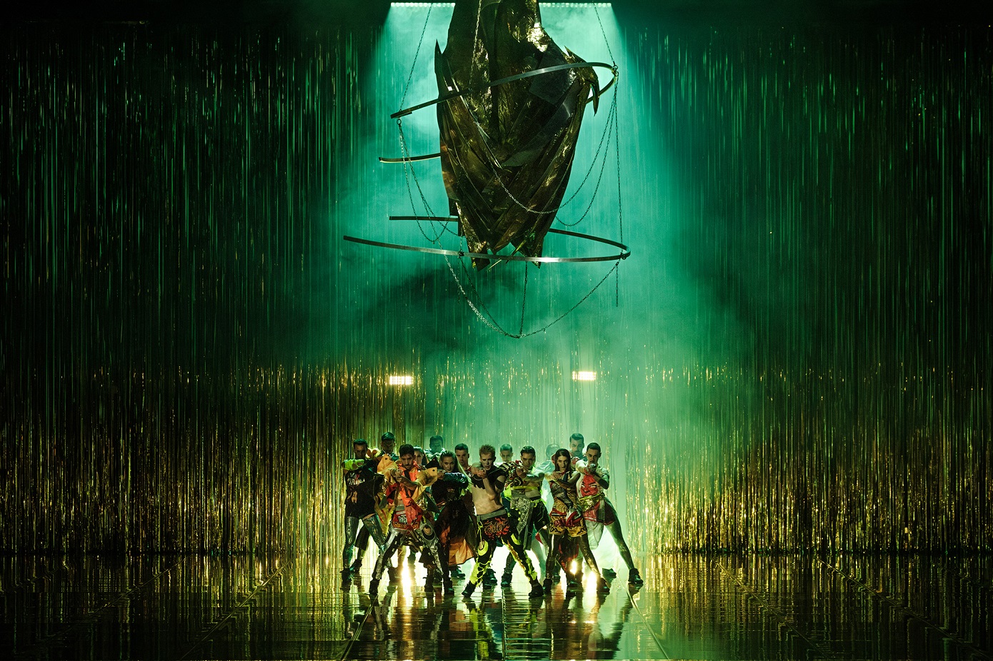 Μέσα από χρυσές αντανακλάσεις, κάθετες οθόνες, λέξεις – συνθήματα και έναν πολυέλαιο μεγάλης κλίμακας, του εικαστικού Πέτρου Τουλούδη, η παράσταση χορού Χρυσή Εποχή υπογράφει τη διακήρυξη μιας νέας πίστης που τοποθετεί τα πιστεύω της όχι στον θεό, αλλά στον άνθρωπο, όχι «εν τοις ουρανοίς» αλλά «επί της γης» – μια διακήρυξη που δεν υπόσχεται τη σωτηρία, αλλά εξασφαλίζει την έξοδο από την κόλαση.