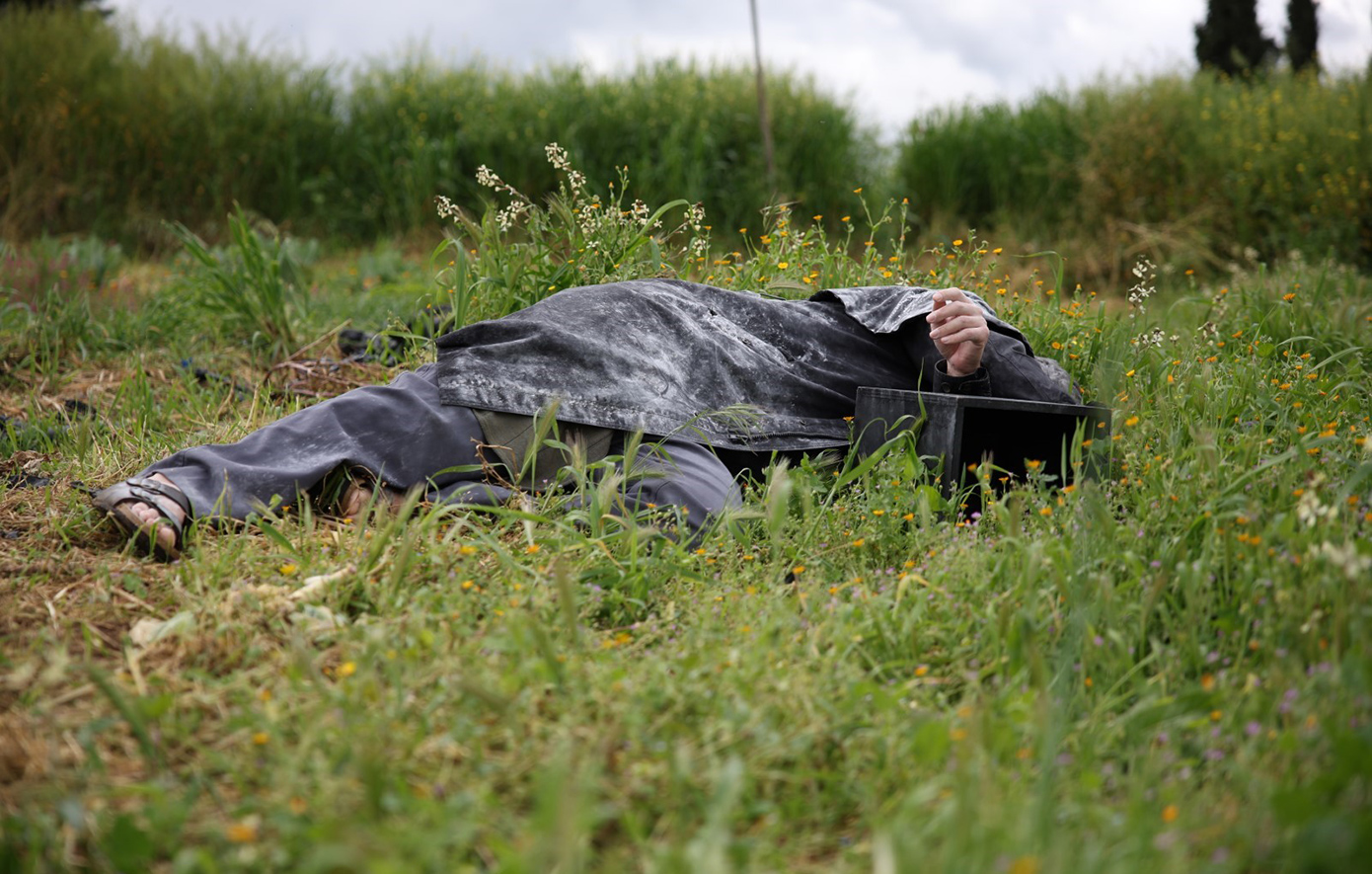 Μια ομάδα ανδρών ξεπροβάλλει από διάφορα σημεία στα χωράφια. Μοιάζουν σαν εξορισμένοι, διωγμένοι, κυνηγημένοι από τον τόπο τους. Εισβάλλουν στην αίθουσα. Ο χώρος τούς θυμίζει κάτι. Δεν νιώθουν απειλή, αλλά ούτε οικειότητα. Πρόκειται να αντιμετωπίσουν τις αλήθειες της ζωής τους. Προσπαθούν να κάνουν τα πρώτα βήματα για να βγουν από τη θέση που τους εγκλωβίζει. Η προσπάθεια που απαιτείται είναι τεράστια. Το θάρρος, επίσης.
