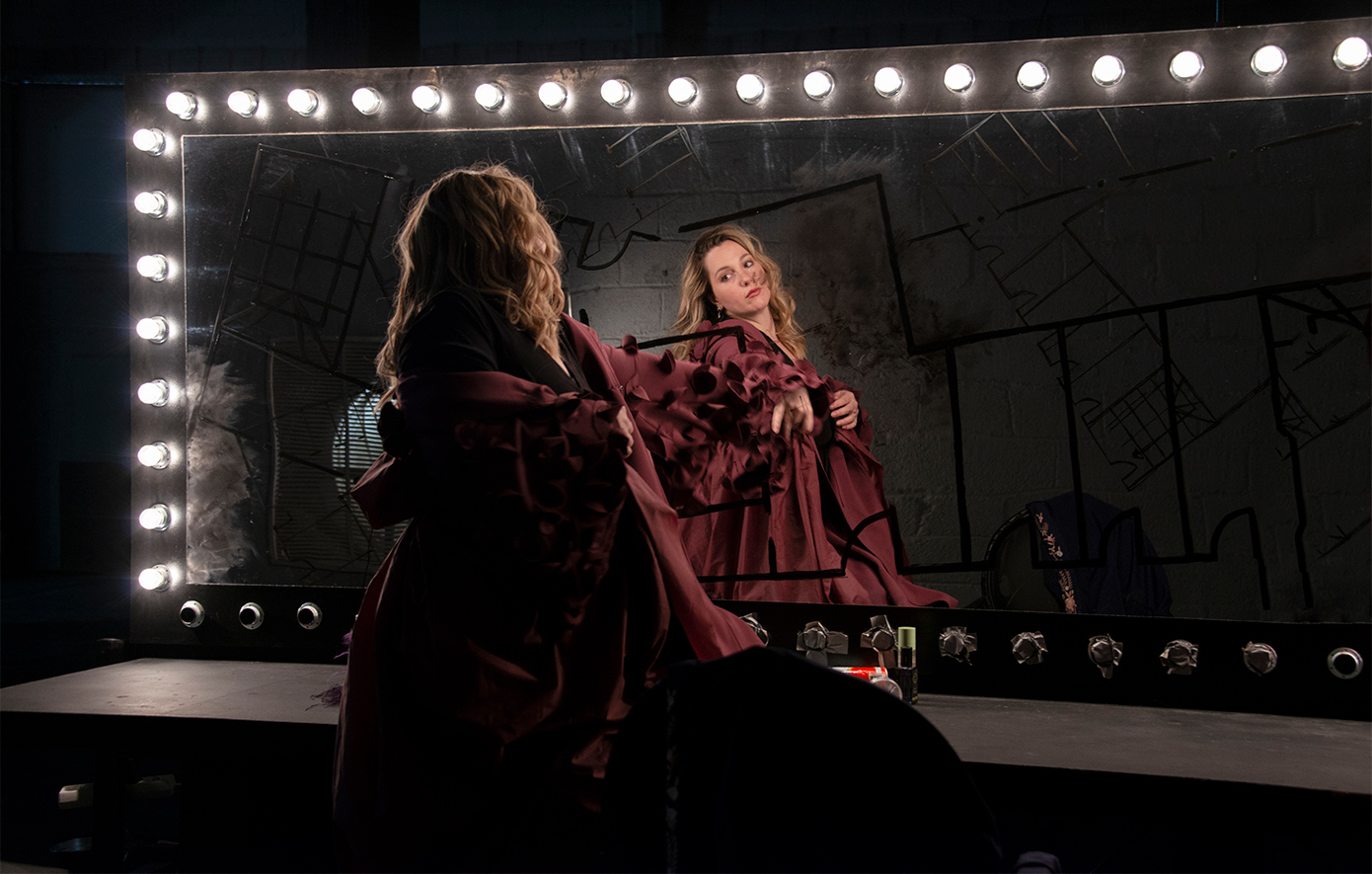 Η απομόνωση και τα βασανιστήρια την έκαναν να χάσει τον προσανατολισμό της, τόσο που δεν μπορούσε να ξεχωρίσει αν βρισκόταν στο κελί ή στο καμαρίνι της. Αυτή η αίσθηση αποτυπώνεται στη σκηνική σύλληψη: Το κτίριο της οδού Μπουμπουλίνας, φορτισμένο με τις πιο σκοτεινές σελίδες της νεότερης Ιστορίας, μεταμορφώνεται σε έναν χώρο προετοιμασίας λίγο πριν την αποκάλυψη της εμπειρίας της. Εκεί, μέσα από μια ιδιότυπη μεταμόρφωση, αναβιώνει τους τρεις μήνες του εγκλεισμού της.