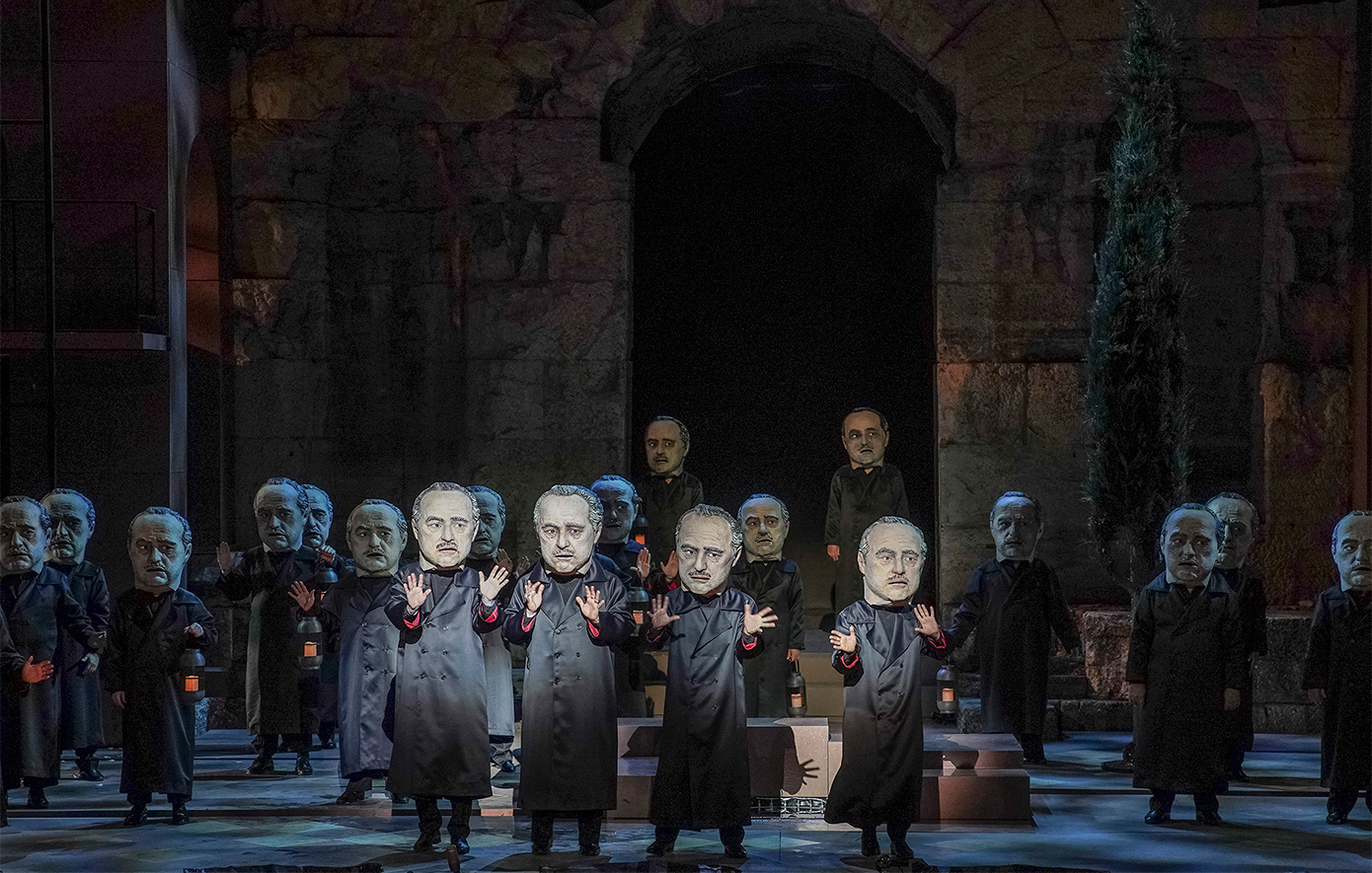 Την παραγωγή, η οποία θα παρουσιαστεί για τέσσερις παραστάσεις στις 27, 29, 30 και 31 Ιουλίου 2025 στο Ηρώδειο, διευθύνει ο διεθνώς διακεκριμένος μαέστρος Ντέρρικ Ινόεϊ. Η επιτυχημένη σκηνοθεσία της παραγωγής είναι της καλλιτεχνικής διευθύντριας του Φεστιβάλ Αθηνών Επιδαύρου Κατερίνας Ευαγγελάτου. Το σκηνικό υπογράφει η Εύα Μανιδάκη, τα κοστούμια ο Άλαν Χράνιτελ, τη χορογραφία και κινησιολογία η Πατρίσια Απέργη και τους φωτισμούς η Ελευθερία Ντεκώ. Την αναβίωση της σκηνοθεσίας υπογράφει ο Ίων Κεσούλης και της χορογραφίας και κινησιολογίας ο Ηλίας Χατζηγεωργίου. Πρωταγωνιστούν σπουδαίοι Έλληνες και ξένοι μονωδοί με διεθνή καταξίωση.
