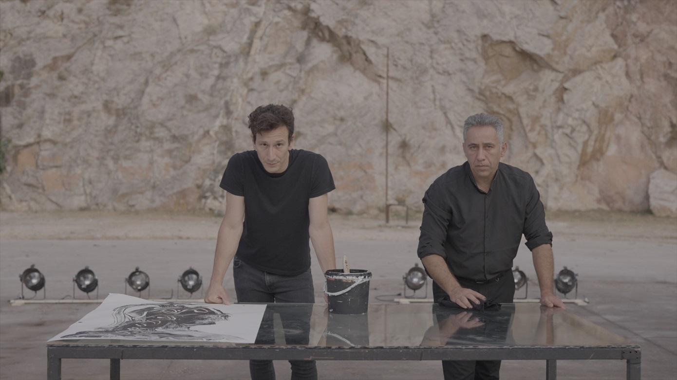 Ο Μιχάλης Σαράντης ερμηνεύει συγκλονιστικά και τους εννιά ρόλους της τραγωδίας, ενώ ο Απόστολος Χαντζαράς συνομιλεί μαζί του ζωγραφίζοντας, μπροστά στα μάτια των θεατών.