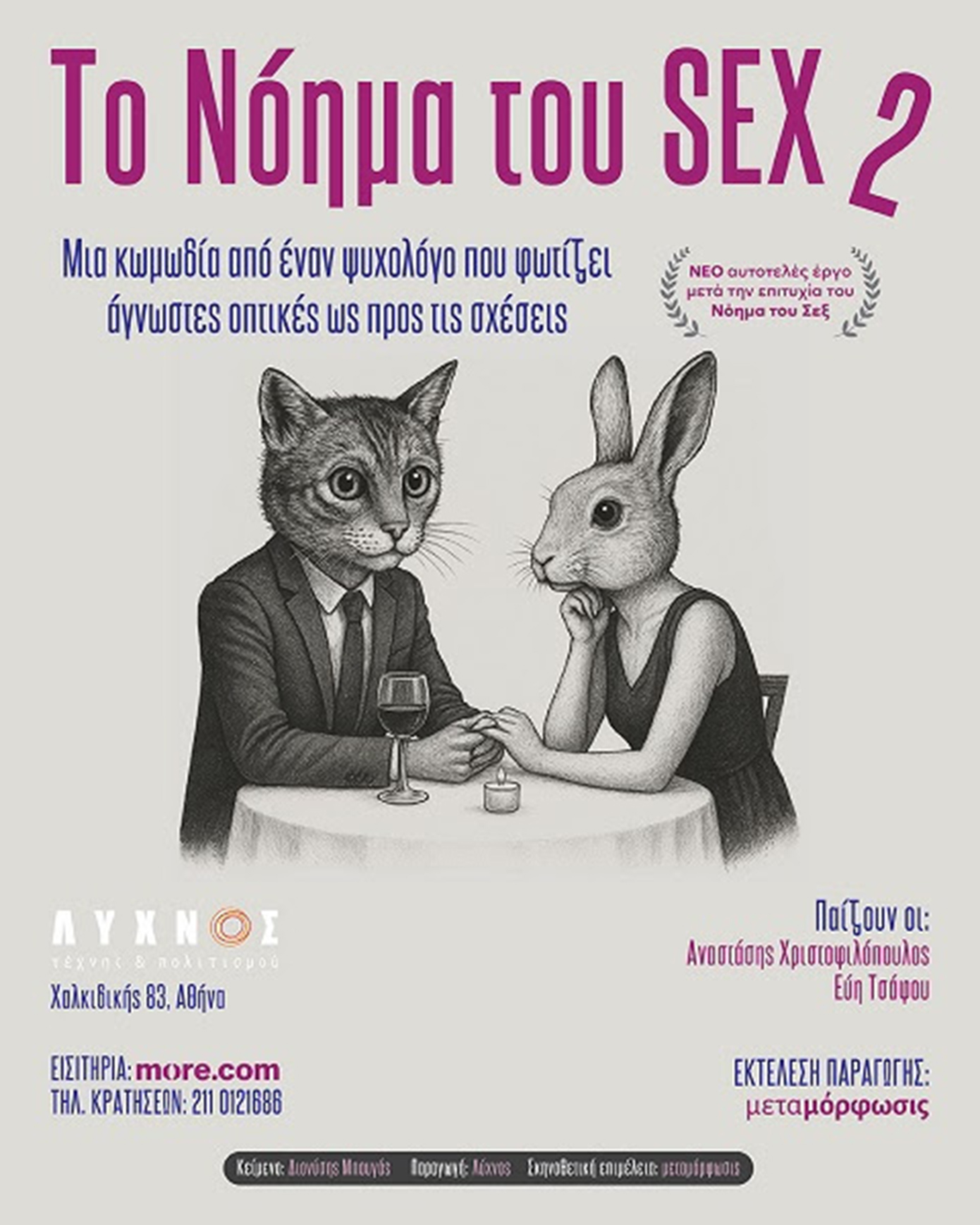 Η συνέχεια που όλοι περιμέναμε – μια νέα, αυτόνομη κωμωδία από έναν ψυχολόγο. Μετά την τεράστια επιτυχία του πρώτου μέρους, το «Νόημα του Sex Νο 2» έρχεται για να ανατρέψει όλα όσα νομίζουμε πως ξέρουμε για τις σχέσεις.