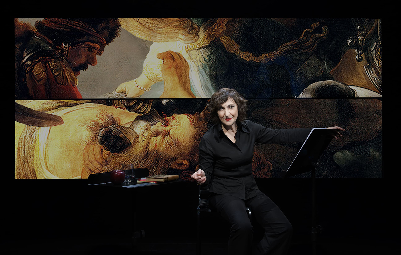 Ο Σέρχιο Μπλάνκο στέκεται μπροστά στον εμβληματικό πίνακα του Ρέμπραντ Η τύφλωση του Σαμψών από τους Φιλισταίους και ξεκινάει μια διάλεξη περί βίας. Η εισήγησή του είναι τολμηρή και κινείται μεταξύ ακαδημαϊκότητας και βιώματος, χωρίς να διακρίνεται με σαφήνεια η πραγματικότητα από τη φαντασία, η προσωπική αλήθεια από το ψέμα, το ψέμα από την εξομολόγηση. Ταυτόχρονα, ο συγγραφέας διερευνά τη βία της λογοτεχνίας: μια βία που τον έχει σημαδέψει ως πόνος, αλλά και συνεπάρει ως απόλαυση.
