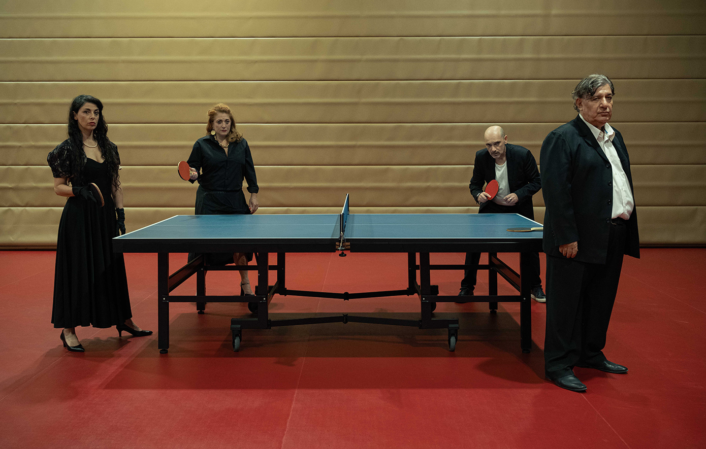Χτίσαμε την παράσταση γύρω από ένα τραπέζι πινγκ-πονγκ, σαν μια παρτίδα όπου δεν υπάρχουν νικητές, μόνο πλευρές που συγκρούονται μέχρι τελικής πτώσεως, της δικής τους πτώσεως βασικά. Στο θέατρο νομίζω σημασία έχει η μεγάλη εικόνα και να μην εγκλωβίζεσαι στα στενά όρια μιας μόνο περίπτωσης. Οπότε ψάξαμε μέσα από τα πρόσωπα να βρούμε αναλογίες με τη δική μας εποχή. Βάλαμε, ας πούμε, τον κύριο Φρικ, που είναι ένας πολυάσχολος και φαινομενικά χωρίς συναισθήματα επιχειρηματίας, να υποφέρει τελικά κι αυτός από ένα κινητό που συνεχώς χτυπάει και τον αποσπά από κάθε προσπάθεια του να προσεγγίσει τη σύζυγό του. Με αυτόν τον τρόπο καταφέρνεις, νομίζω, να εξισορροπήσεις το δράμα του κάθε ήρωα, μπολιάζοντάς το με ένα σχόλιο για το πώς ζούμε, γεγονός που δημιουργεί χιούμορ. Αυτό κάνει στην ουσία ο Μίλερ, οπότε ακολουθώντας αυτό το πολύ καλογραμμένο κείμενο μπορείς εύκολα να βρεις αυτή την ισορροπία.