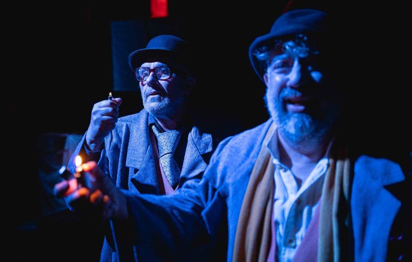Οι Δημήτρης Φραγκιόγλου και Νίκος Καμτσής, δύο ηθοποιοί με απαράμιλλη χημεία και σκηνική δεινότητα, δίνουν σάρκα και οστά στους Εστραγκόν και Βλαντιμίρ, μετατρέποντας την αιώνια αναμονή τους σε μια συγκλονιστική, σχεδόν επαναστατική πράξη. Οι δυο τους δίνουν σωματική υπόσταση σε ένα είδος υπαρξιακής μνήμης που δεν διαγράφεται. Η ερμηνεία τους μοιάζει με τελετή. Με μαύρη κωμωδία. Με λύτρωση.