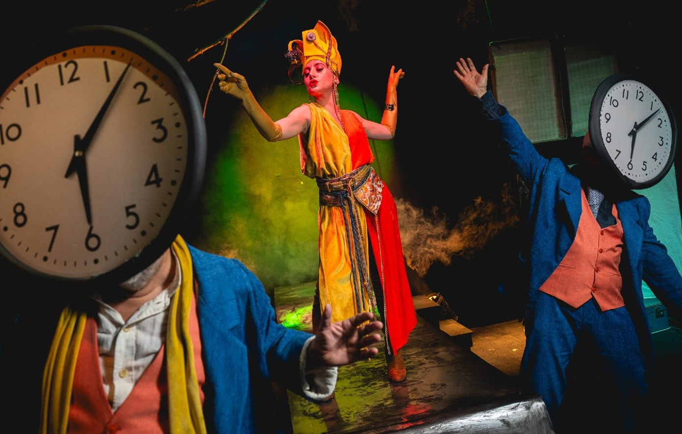 Οι αποσκευές τους και οι μνήμες τους γεμάτες με φράσεις του Μπέκετ, με ρετάλια από σιωπές και ξεχασμένες σκηνικές οδηγίες. Κάπου εκεί, ανάμεσα στις βαλίτσες στο επίτηδες μυστηριώδες δέντρο, αρχίζουν να υποπτεύονται πως… ίσως ο Γκοντό ήταν πάντα εδώ. Η σκηνή γίνεται ένα θέατρο μέσα στο θέατρο, γεμάτο μπαούλα, βαλίτσες, ερείπια θεατρικών εποχών και φωτισμούς που δραπετεύουν από τον ρεαλισμό.