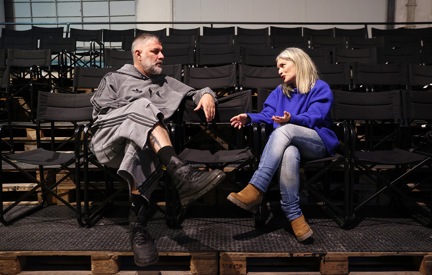 Κοίταξε, νομίζω ότι είμαστε προσωπικοί και εγώ και η Λένα. Κάνουμε αυτό που πραγματικά γουστάρουμε να κάνουμε, κατάλαβες; Δεν αυτο-λογοκρινόμαστε. Έχουμε την ελευθερία να τολμήσουμε, να κάνουμε πράγματα. Σε αυτό το θέμα ταιριάζουμε, με τη Λένα. Από την άλλη ταιριάζουμε και σαν άνθρωποι, γιατί είναι επίσης ένας ευγενικός άνθρωπος και τρομερά δοτικός. Έχουμε μια άψογη συνεργασία. Συνομιλούμε και συνεργαζόμαστε τέλεια και είμαι πάρα πολύ χαρούμενος που συναντήθηκα με τη Λένα και είναι μεγάλη χαρά κι ευλογία που βρίσκεται στην παράσταση, γιατί βοήθησε πάρα πολύ.