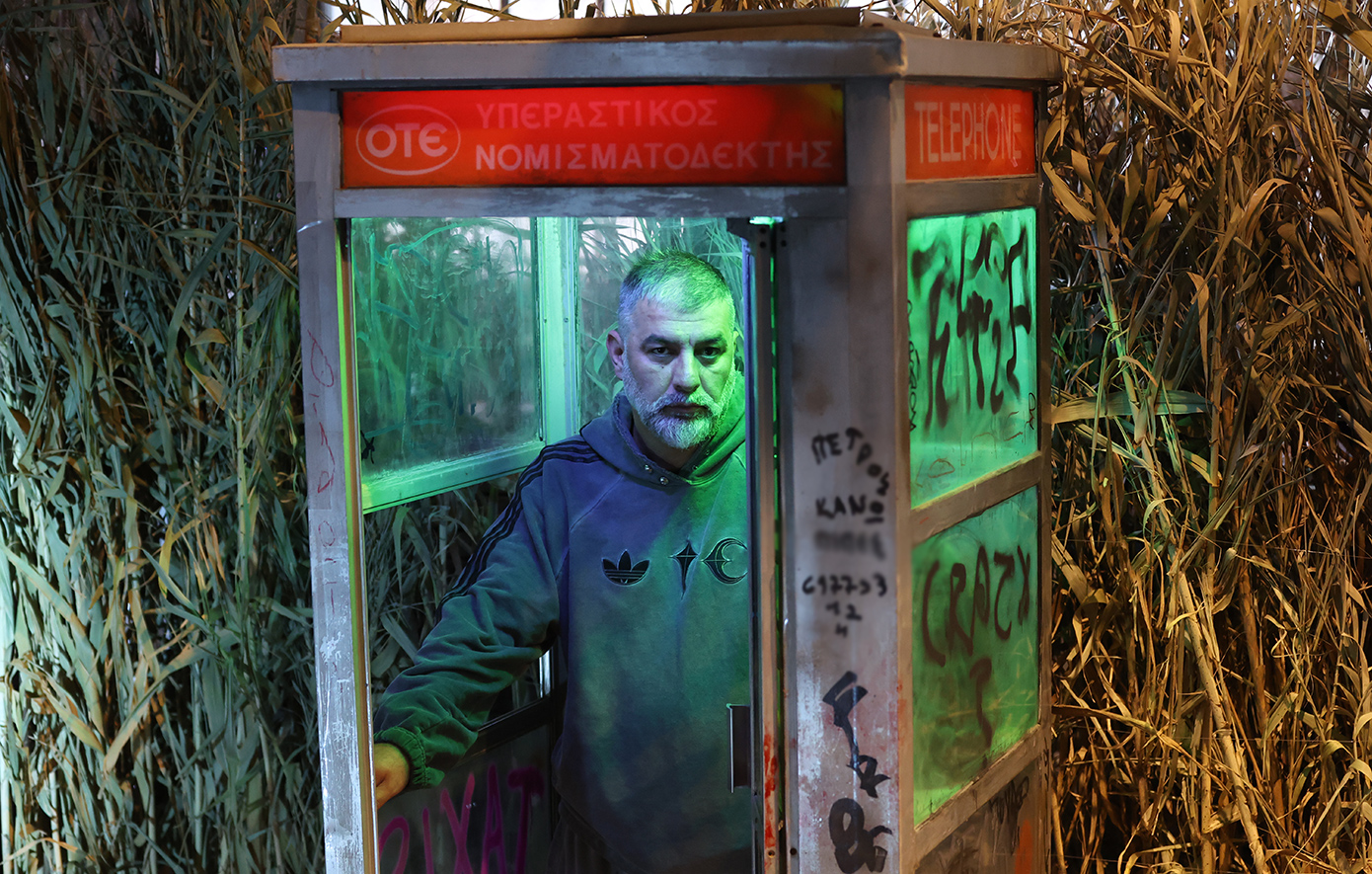 – Βλέπω τα σκηνικά της παράστασης κι έχω εντυπωσιαστεί με τα αντικείμενα, που είναι παλιά, όπως ο τηλεφωνικός θάλαμος, με γύρισε πίσω. Αυτά εσύ τα έχεις βρει;