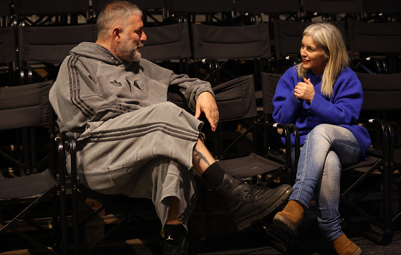 – Και είστε και οι δύο ανατρεπτικοί ως καλλιτέχνες. Θα έλεγα της ίδιας σχολής περίπου, δηλαδή κάνετε ωμό θέατρο. Ξέρεις πώς το εννοώ.