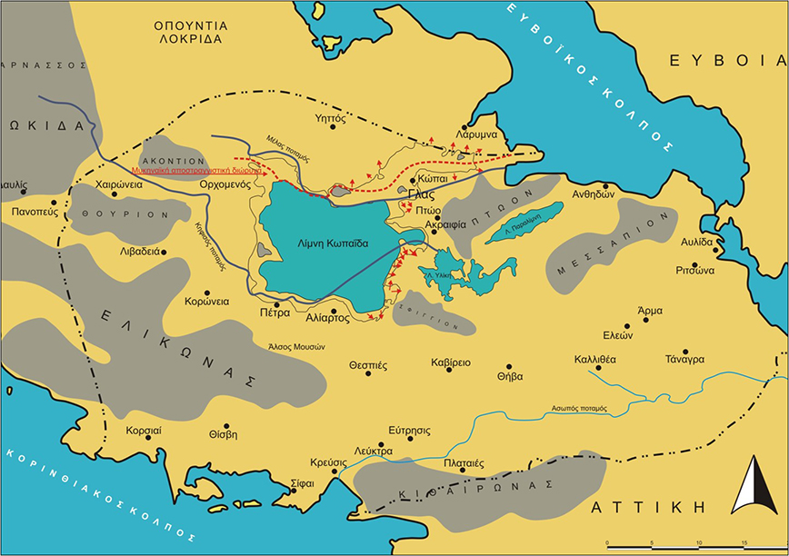 «Το μεγαλόπνοο, όμως, σχέδιο αποξήρανσης της λίμνης, που υλοποιήθηκε κατά τη Μυκηναϊκή εποχή, ήταν εξαιρετικά σύνθετο. Έπρεπε να διαμορφωθεί η περίμετρος της λίμνης με σκοπό τον περιορισμό της, με την εκτροπή δύο ποταμών, του Βοιωτικού Κηφισού και του Μέλανα, που κατέληγαν στην Κωπαΐδα. Για να οδηγήσουν το νερό όπου θα τους επέτρεπε να αποκτήσουν γόνιμα εδάφη και ασφάλεια από ανεξέλεγκτες πλημμύρες, έσκαψαν βαθιά κανάλια και ανύψωσαν μεγάλα κτιστά αναχώματα, διοχετεύοντας τα νερά των ποταμών στις φυσικές καταβόθρες που υπάρχουν στις παρυφές της λίμνης, μέσω των οποίων τους έδωσαν διέξοδο προς τη θάλασσα. Τα τεχνικά έργα περιλαμβάνουν τεχνητές λίμνες εν είδει ταμιευτήρων ύδατος, όπου μπορούσαν να έχουν νερό σε περιόδους ξηρασίας. Παράλληλα, αρκετά σημεία είχαν διαμορφωθεί για τον έλεγχο και την αποτροπή υπερχείλισης, αφήνοντας κάθε φορά ελεγχόμενο όγκο νερού να εισρέει στη λίμνη», προσθέτει η αρχαιολόγος.
