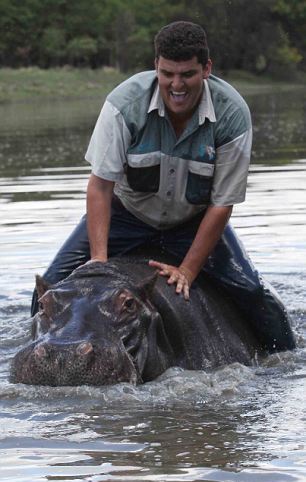 Ο ιπποπόταμος που ζυγίζει 1200 κιλά είναι τόσο καλός κολυμβητής που τα πόδια του Els δεν μπαίνουν ούτε μέχρι το γόνατο. Όπως λέει ο ίδιος κανένας φίλος του δεν τολμάει να πλησιάσει το άγριο ζώο αλλά αυτός έχει αναπτύξει σχέση μαζί του.