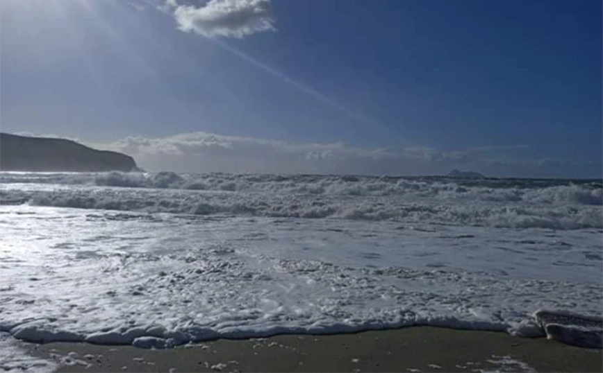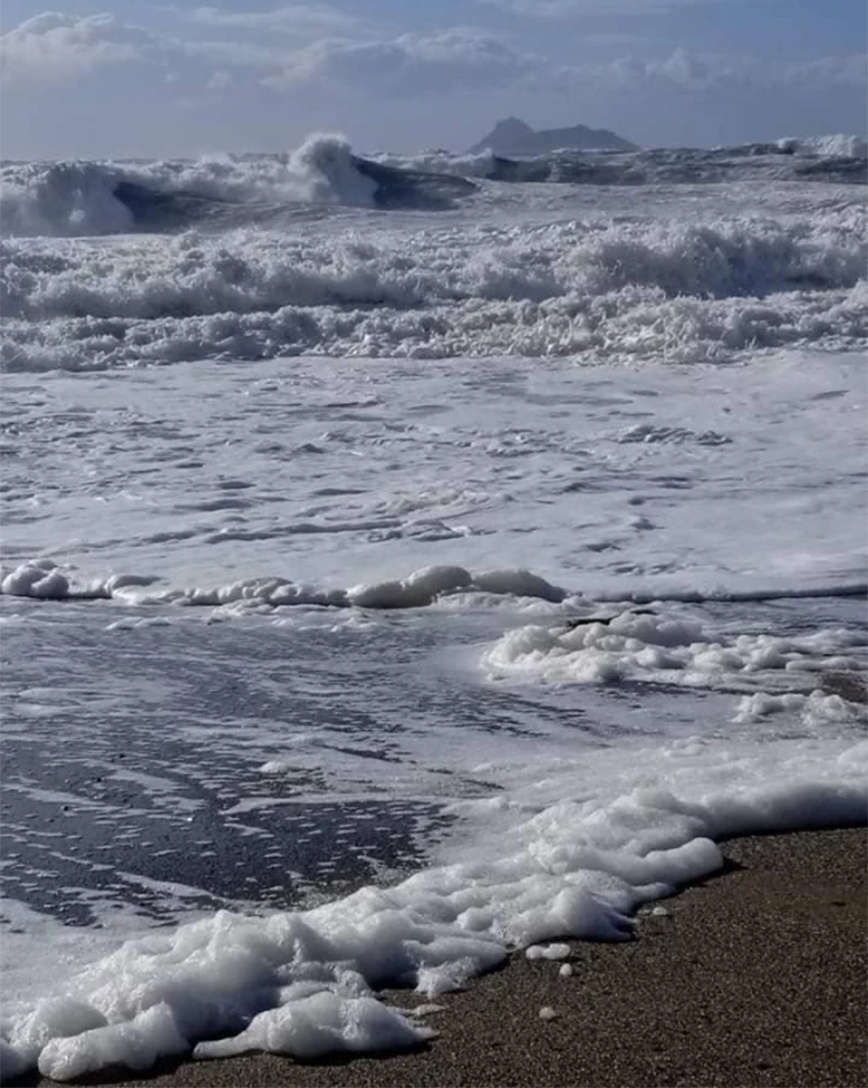 Σπάνιες εικόνες αντίκρισαν οι κάτοικοι του Κομμού της Μεσαράς στην Κρήτη χθες Κυριακή 26 Νοεμβρίου, καθώς η θάλασσα είχε τεράστια κύματα και η παραλία γέμισε με αφρούς εξαιτίας της κακοκαιρίας Bettina.