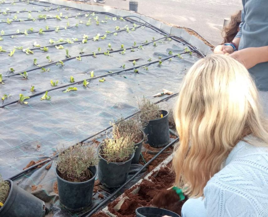 Μαθητές, γονείς και εκπαιδευτικοί πρόσφατα φύτεψαν περίπου 600 μαρούλια και άλλα τόσα κρεμμυδάκια και περισσότερα από 100 αρωματικά -φαρμακευτικά φυτά της Ελλάδας. Έως την άνοιξη, όπως υπογραμμίζουν από τον Σύλλογο Γονέων και Κηδεμόνων, τα λαχανικά θα πλαισιωθούν με αρωματικά βότανα που έχουν ευεργετικές ιδιότητες: δεντρολίβανο (Salvia rosmarinus), θρούμπι (Satureja horvatii subsp. macrophylla), νησιωτική ρίγανη (Origanum onites), τσάι Ολύμπου (Sideritis scardica), βαλκανικό θυμάρι (Thymus sibthorpii), κρίταμο (Crithmum maritimum), κρητικό ψευδοκάρυ ή κρητικό ελίχρυσο (Helichrysum heldreichii), λαδανιά (Cistus creticus subsp. creticus) και ελληνικό κίτρινο τεύκριο (Teucrium flavum subsp. Hellenicum), στο πλαίσιο συγκαλλιέργειας.