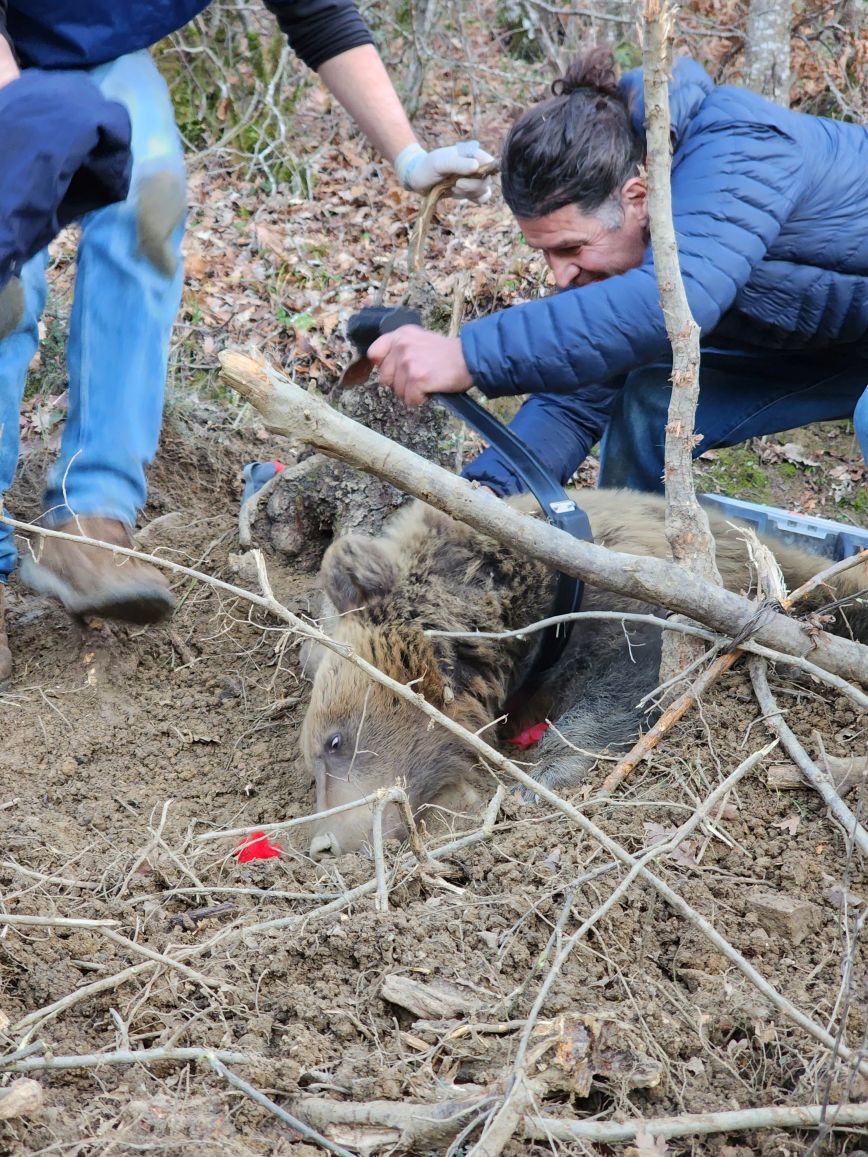 Μία ενήλικη θηλυκή αρκούδα -βάρους περίπου 90 κιλών και ηλικίας περίπου 5 ετών, η οποία είχε εγκλωβιστεί σε συρμάτινη θηλιά (παράνομη παγίδα από λαθροθήρες), σε ορεινή περιοχή του Πόγραδετς, απελευθέρωσαν την Τετάρτη 27 Δεκεμβρίου στελέχη των «Ομάδων Άμεσης Επέμβασης» της ΚΑΛΛΙΣΤΩ και της PPNEA (Protection and Preservation of Natural Environment in Albania), με την υποστήριξη της Μονάδας Προστατευόμενων Περιοχών της Περιφέρειας της Κορυτσάς (RAPA Korca) και της Αλβανικής Ομάδας Διάσωσης Άγριας Ζωής (AWRT).