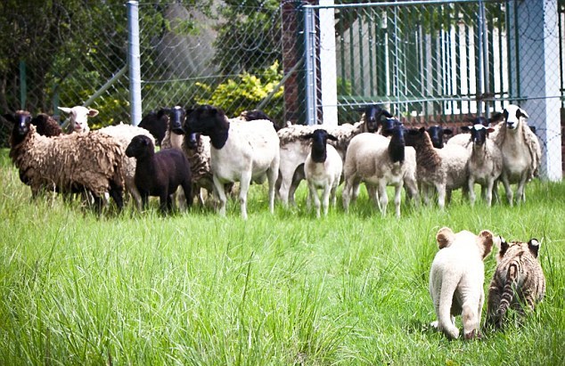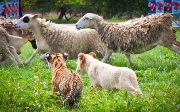 Ένα λιοντάρακι και ένα τιγράκι μάλλον αντιμετωπίζουν προβλήματα… προσωπικότητας καθώς έχουν αναλάβει χρέη… τσοπανόσκυλων.