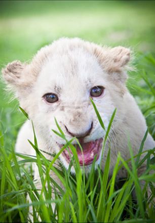 Το λευκό λιονταράκι είναι 4 μηνών, ακούει στο όνομα Mohlatsi (που σημαίνει «τυχερός») και ζει στο ξενοδοχείο Ranch Hotel, στην επαρχία Limpopo της Νότιας Αφρικής.