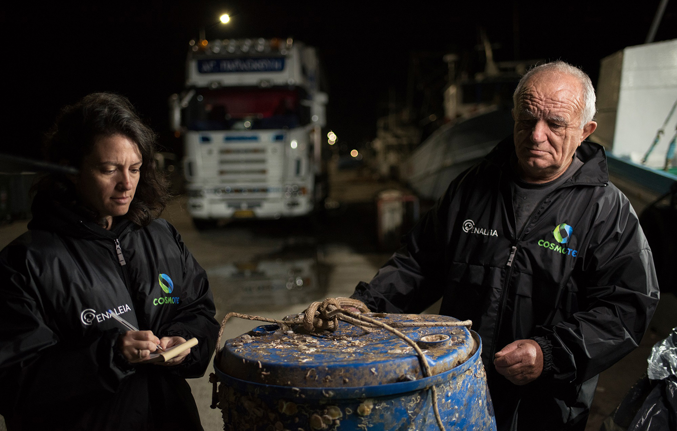 Στο πλαίσιο της πρωτοβουλίας COSMOTE BLUE και μέσα από ένα πρόγραμμα δράσεων σε περιοχές του Αργοσαρωνικού, του Θερμαϊκού και της Χαλκιδικής, καθώς και στα 3 μεγαλύτερα λιμάνια της Κρήτης (Χανιά, Ηράκλειο, Αγ. Νικόλαος), έχουν εκπαιδευτεί μέχρι σήμερα 216 επαγγελματίες ψαράδες σε βιώσιμες μεθόδους αλιείας και σε καλές πρακτικές καθαρισμού θαλασσών και ακτών και έχουν συγκεντρωθεί 57 τόνοι πλαστικού με στόχο να φτάσουν τους 90 τόνους μέχρι το 2025. Επίσης έχουν ανακυκλωθεί 33 τόνοι πλαστικού με στόχο να φτάσουν τους 52 τόνους.