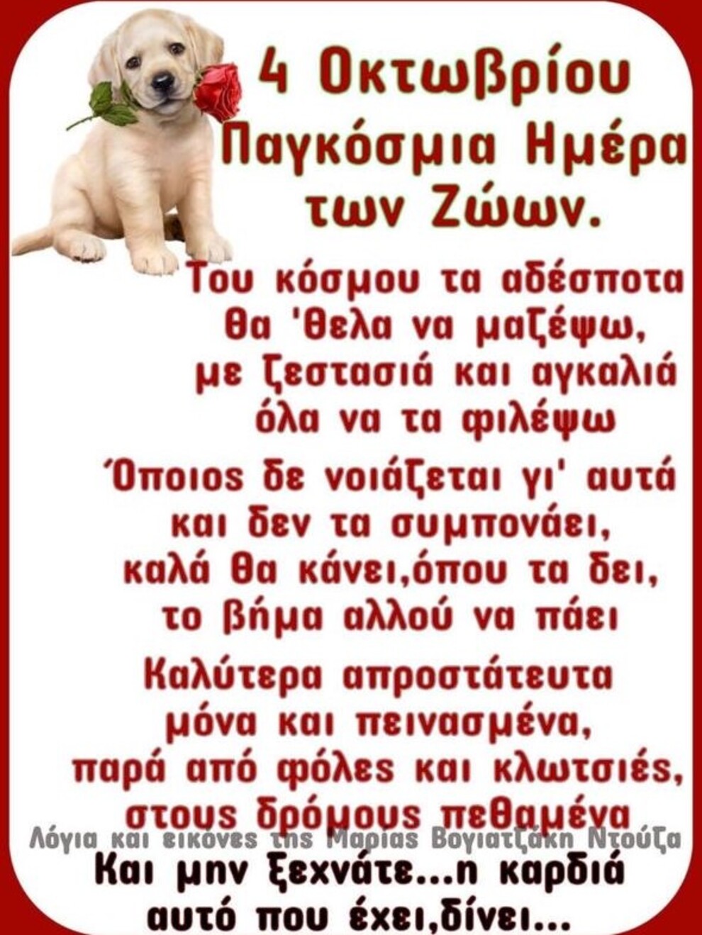 Λίγα λόγια για την Παγκόσμια Ημέρα των Ζώων