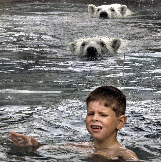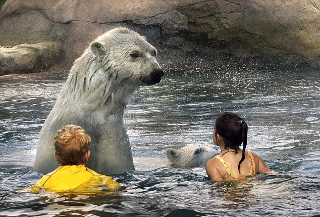 Οι εντυπωσιακές φωτογραφίες που ακολουθούν, δείχνουν πώς μπορούν να συνυπάρξουν οι πολικές αρκούδες με τα παιδιά την ώρα που κολυμπούν.