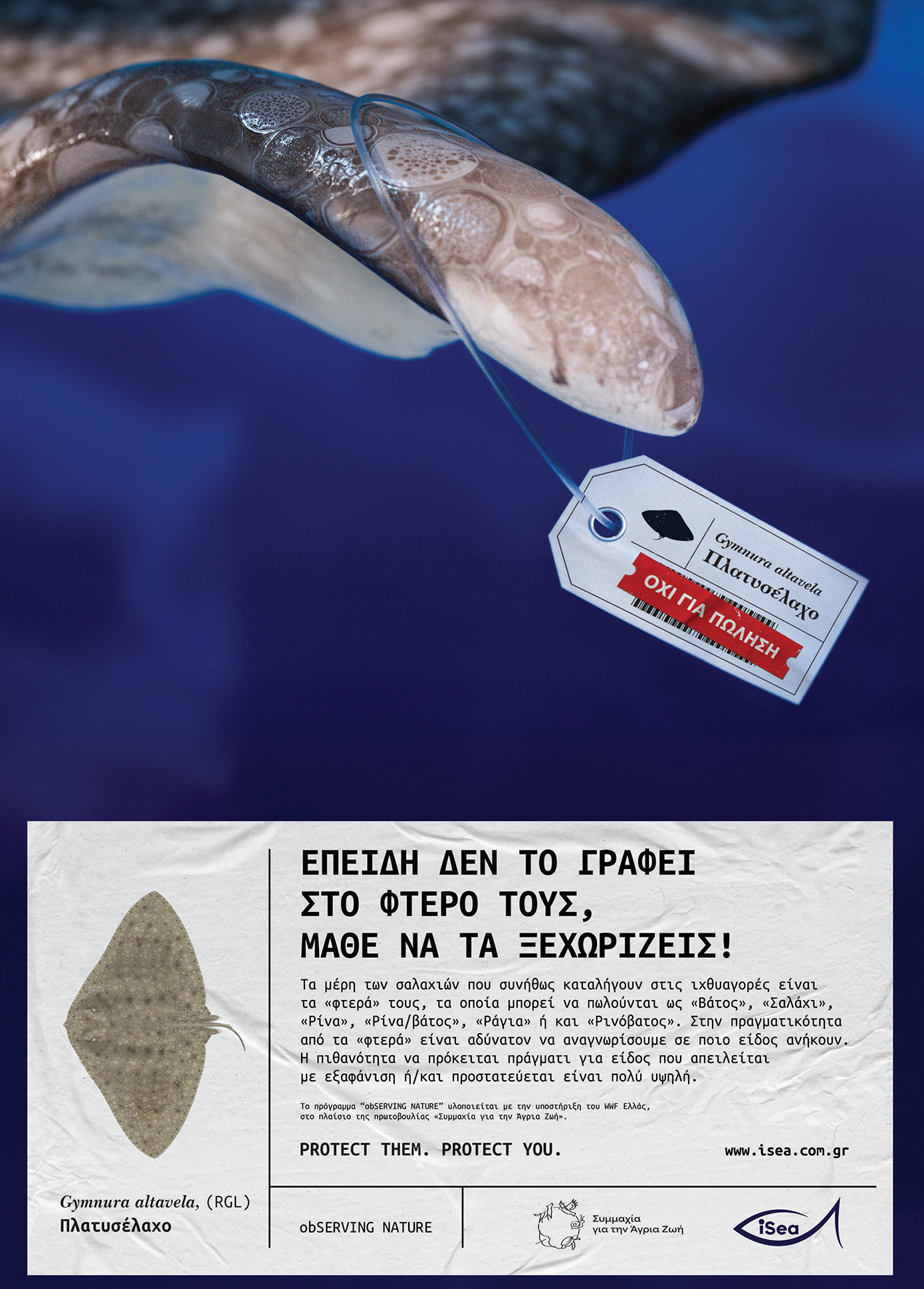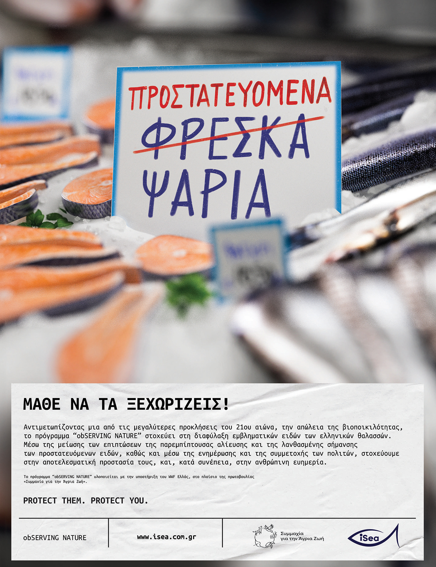 Η καμπάνια εστιάζει σε πέντε εμβληματικά είδη των ελληνικών θαλασσών, τα οποία, σύμφωνα με τα ευρήματα της οργάνωσης, εντοπίζονται συχνά στις ψαραγορές και τα ιχθυοπωλεία, παρόλο που όλα προστατεύονται και απειλούνται με εξαφάνιση.