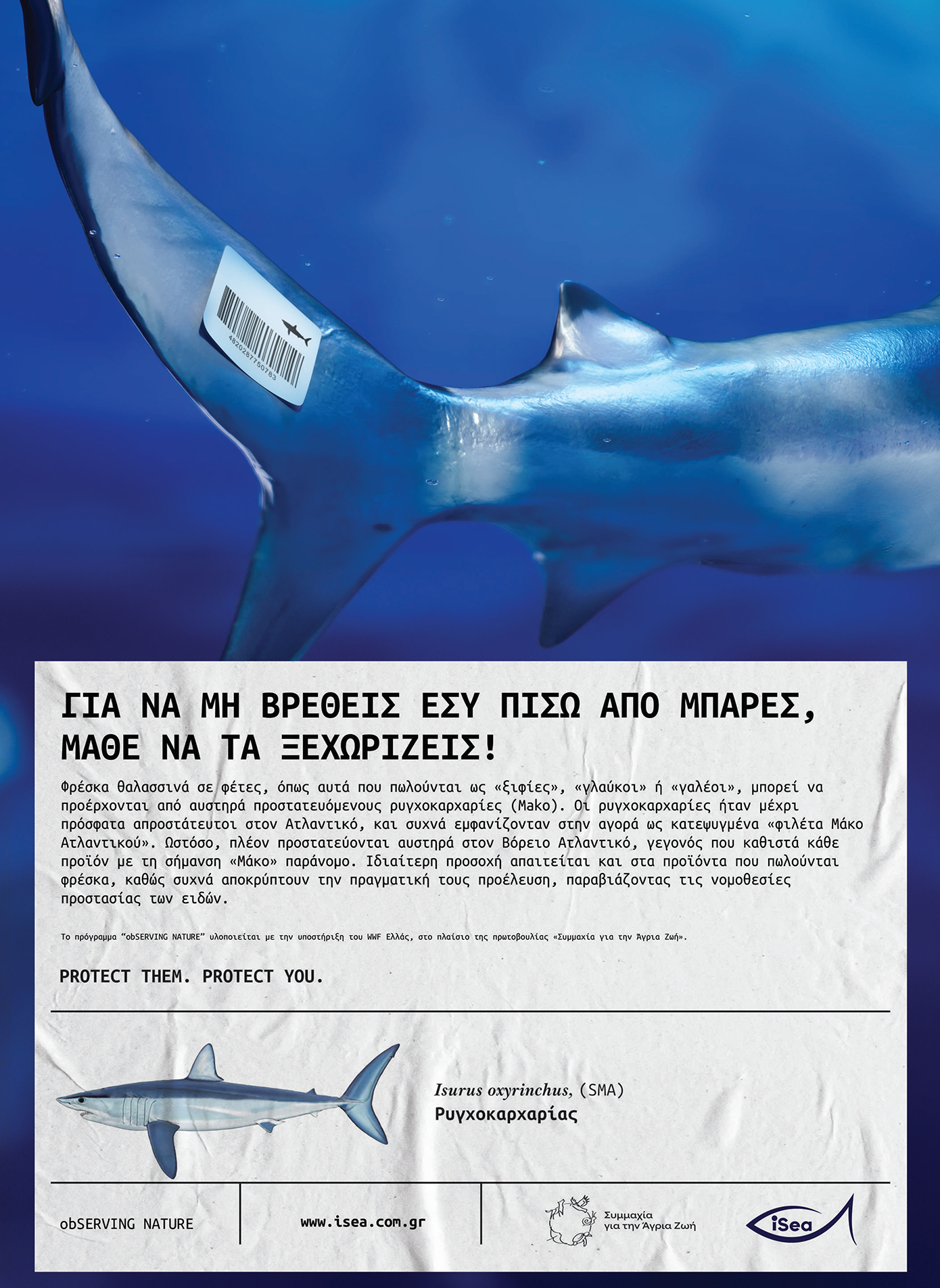 Τα παραπάνω στοιχεία δίνει, με σχετική ανακοίνωσή της, η περιβαλλοντική οργάνωση iSea, που μελετώντας το φαινόμενο τα τελευταία πέντε χρόνια, υποστηρίζει ότι πάνω από το 60% των προϊόντων καρχαριών και σαλαχιών στις ελληνικές αγορές φέρουν λανθασμένη ή καθόλου σήμανση, συχνά ως «κάλυψη» για το εμπόριο προστατευόμενων ειδών, τα οποία απαγορεύεται να αλιεύονται και να πωλούνται.