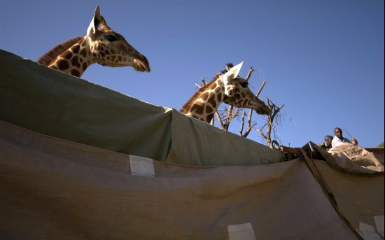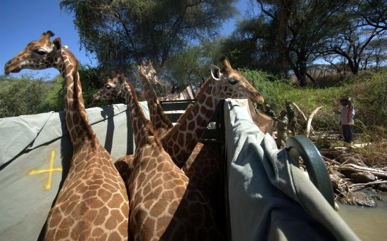 Οκτώ καμηλοπαρδάλεις είχαν την ευκαιρία να απολαύσουν μια μοναδική εμπειρία καθώς μεταφέρθηκαν με σχεδία στην περιοχή που επρόκειτο να εγκατασταθούν.