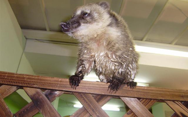 Ένα μικρό Κοάτι (Nasua nasua) μπήκε σ’ ένα σπίτι στα Μελίσσια, πασαλειμμένο με ξεραμένους ασβέστες. Το Κοάτι είναι ζώο της Κεντρικής και Νότια Αμερικής, το οποίο όμως – δυστυχώς – πωλείται ως κατοικίδιο και εισάγεται νόμιμα στη χώρας μας. Είναι το δεύτερο Κοάτι που φτάνει στο Σταθμό του Συλλόγου ΑΝΙΜΑ – το πρώτο ήταν ενήλικο, είχε βρεθεί κοντά στη Θήβα και εστάλη στο Σύλλογο ως… ασβός.