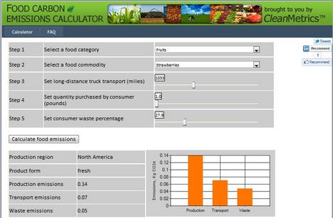 Κατά το παρελθόν ήταν δύσκολο να βρει κανείς το αποτύπωμα άνθρακα στη διατροφή λόγω των πολλών δεδομένων που απαιτούνται για την προέλευση των τροφών, από το στάδιο της παραγωγής μέχρι την κατανάλωση. Ωστόσο η Clean Metrics κυκλοφόρησε δωρεάν ένα εργαλείο που μπορεί να χρησιμοποιηθεί για τον υπολογισμό των εκπομπών.