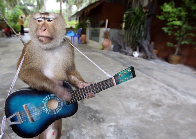 Τα μέλη ενός μουσικού θιάσου, ιδιαίτερα δημοφιλούς στους τουρίστες που επισκέπτονται το παραθεριστικό θέρετρο Thai στο Koh Samui της Ταϊλάνδης, δεν είναι άνθρωποι… αλλά πίθηκοι που υποβάλλονται σε διαφόρων ειδών «παιχνίδια» για να διασκεδάσουν τους «ξένους με τα λεφτά»!