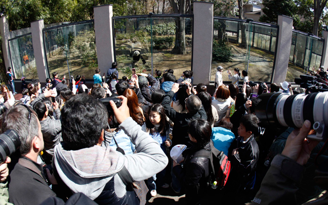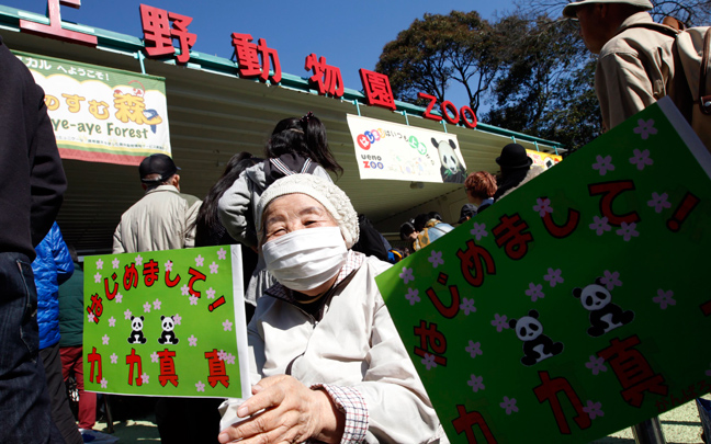 Αφήνοντας για λίγο πίσω τους τον τρόμο και την τραγωδία από το σεισμό και το τσουνάμι στα βορειοανατολικά της Ιαπωνίας, οι Ιάπωνες σχηματίζουν σήμερα μεγάλες ουρές για να δουν την Shin Shin και τον Ri Ri στο Ζωολογική Κήπο του Τόκιο.