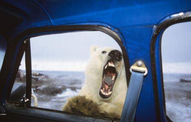 Αρχικά ο φωτογράφος Tom Leeson νόμιζε ότι η πολική αρκούδα που πλησίασε το αυτοκίνητό του, στις βόρειες ακτές της Αλάσκας απλά περιεργαζόταν το χώρο… δευτερόλεπτα μετά όμως του έδειξε τις πραγματικές της διαθέσεις, τις οποίες ήταν τυχερός και απαθανάτισε στην κάμερά του!
