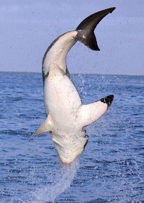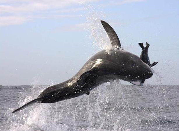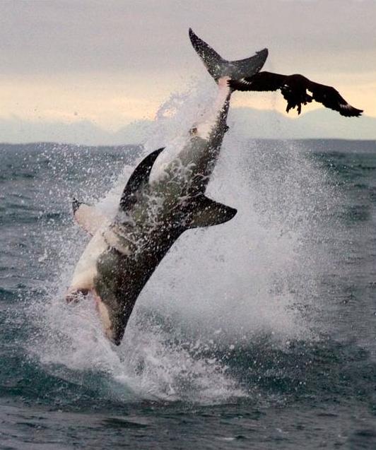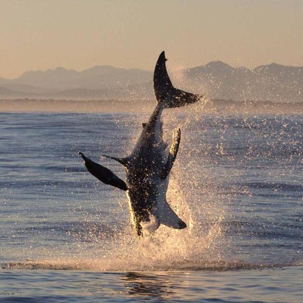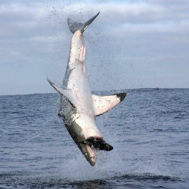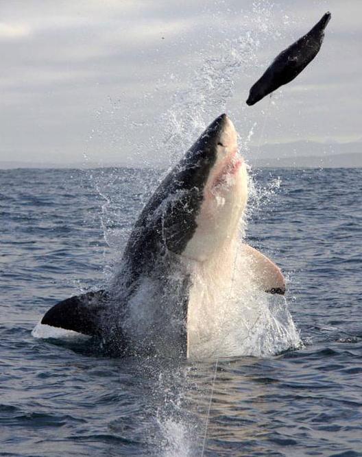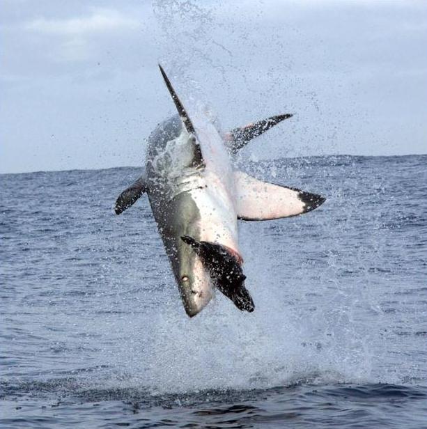 Ένας μεγάλος λευκός καρχαρίας έχει βγει για κυνήγι στα ανοιχτά του κόλπου False Bay στη νότια Αφρική.