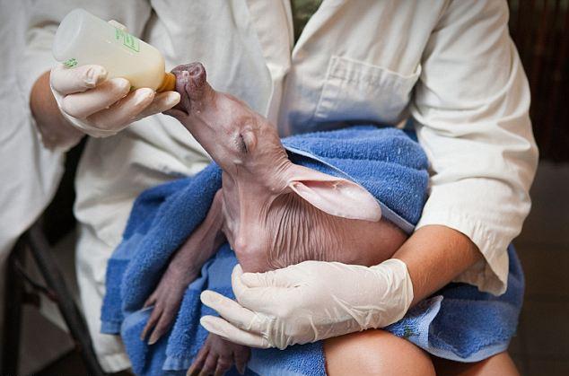 Φυσιολογικά τα νεογέννητα παραμένουν με τη μητέρα τους για τους επόμενους 6 μήνες της ζωής τους, προτού ανεξαρτητοποιηθούν, όμως λόγω της συμπεριφοράς της μητέρας του και από φόβο μην το τραυματίσει κατά λάθος επενέβησαν. Τα εν λόγω ζώα έχουν ιδιαίτερα μεγάλη όρεξη για ζωύφια και μπορούν να «ρουφήξουν» μέχρι και 50000 την ώρα, ενώ υπάρχουν 35 υπό αιχμαλωσία σε ζωολογικούς κήπους σε ολόκληρη τη Βόρειο Αμερική.