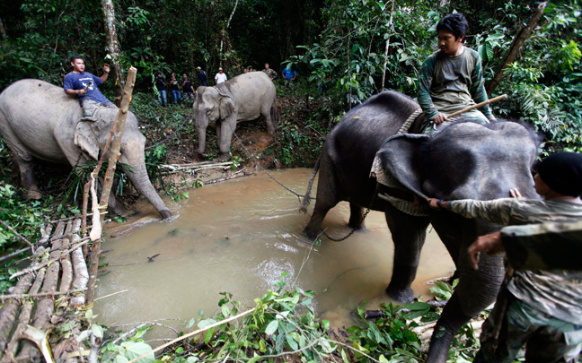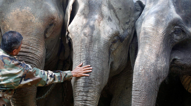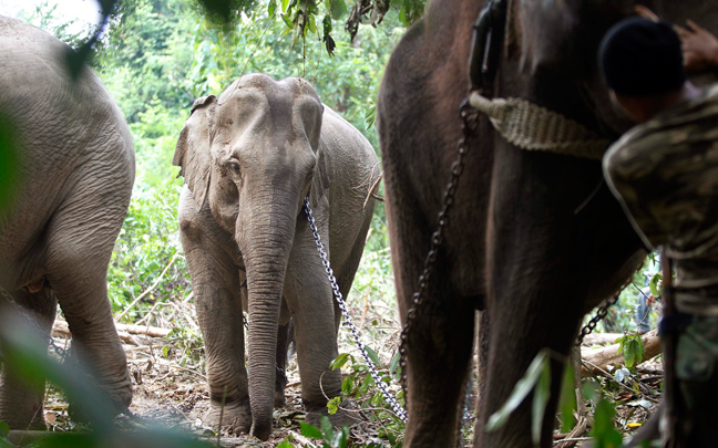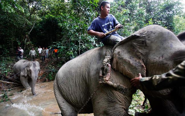 Κατά τη μεταφορά του «άγριου ελέφαντα» χρησιμοποιούνται εξημερωμένοι ελέφαντες οι οποίοι τον συνοδεύουν σε προστατευμένο περιβάλλον.