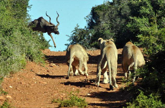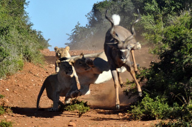 Με μια αστραπιαία κίνηση ένα από τα τρία λιοντάρια προσπάθησε να αρπάξει την αντιλόπη από το λαιμό… αλλά τελικά κατάφερε να ξεφύγει από τα κοφτερά δόντια και των τεσσάρων… αφήνοντάς τα με την ουρά στα σκέλια και τα στομάχια άδεια!